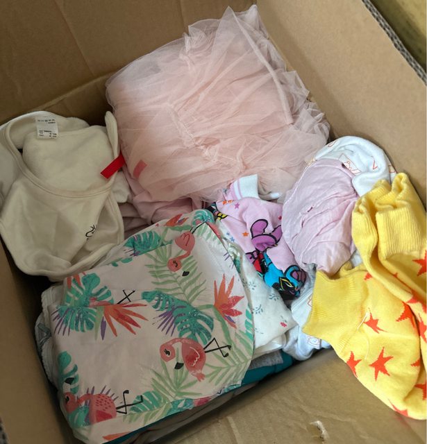 物品名稱:0-2歲女寶衣物用品一大箱(包巾、衣褲、圍兜、襪子、裙子、帽子、鞋子、