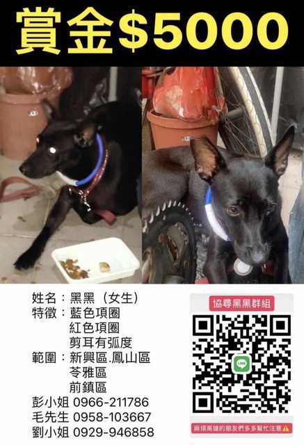 推 button5 : 還沒找到噢,希望黑黑快回家 10/02 15:44