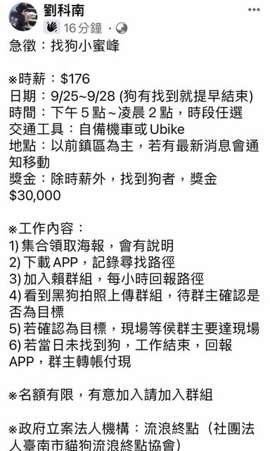 ## 9/25協會目前已開職缺找狗狗