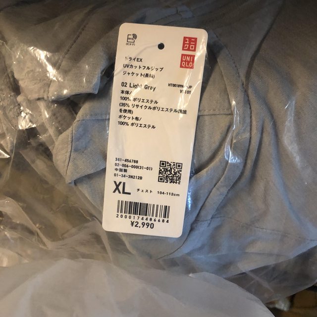 今夏日本購入,標籤未剪,男用連帽抗UV薄外套,XL號,灰色,定價日幣2990。請參閱上述