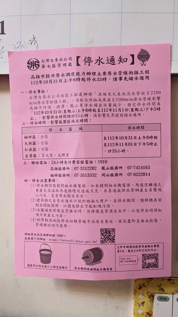 標題[情報] 10/31楠梓大社仁武左營停水