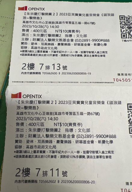 物品名稱:11/28至德堂下午2點半豆莢寶寶2張