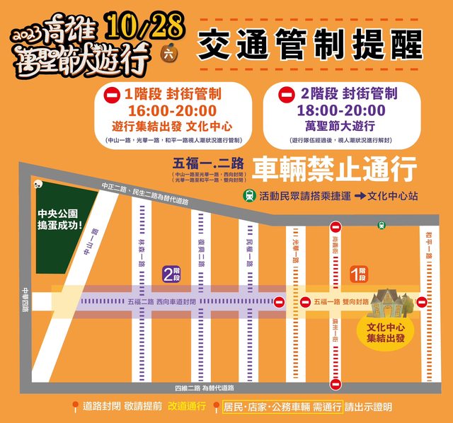 今天下午4點後 高雄市區有2個地方會有辦萬聖節封街活動