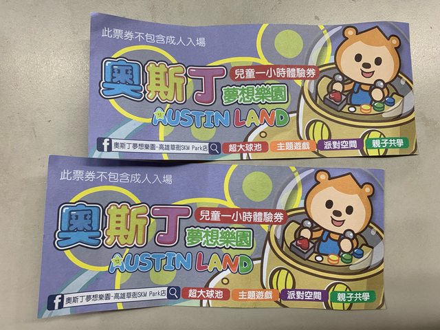 物品名稱:奧斯丁夢想樂園門票(高雄草衙SKM Park店)