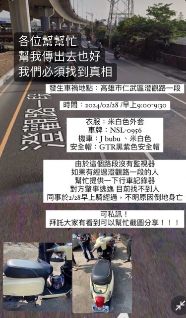 好朋友在車禍中身亡了,但因不明原因到倒地身亡,由於那個路段沒有攝影機所以希望有目