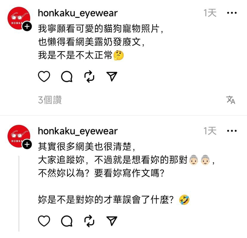 → orzkk88 : 這個眼鏡行帳號就說長輩不醜幹嘛遮03/07 19:54