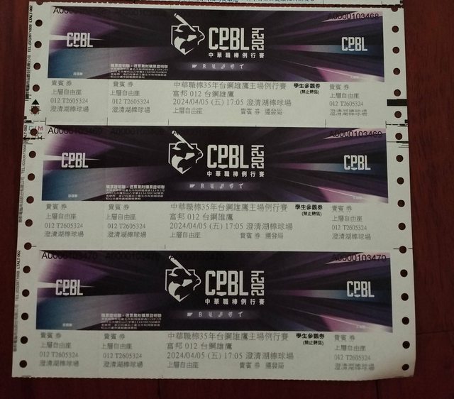 物品名稱:台鋼雄鷹4/5棒球票