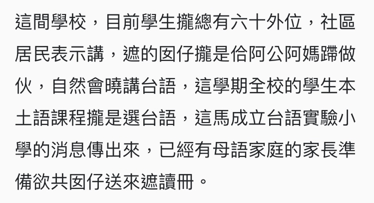 chyunyou : 最不缺台語資源的縣市,要辦理全程台語的國小,是 04/11 03:31