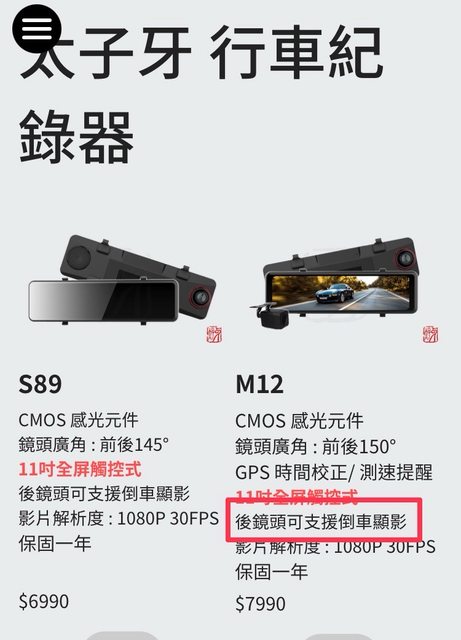 3.太子牙行車紀錄器M12,已過保,可自行找技師裝上。