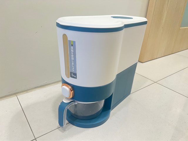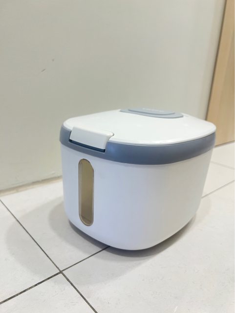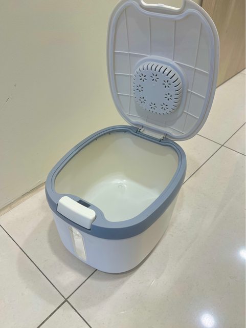 自動出米桶,大容量5公斤,ㄧ鍵出米很方便,碗蓋可瀝米,使用次數五次內