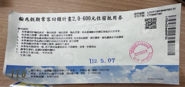 標題[交換] 翰品集團飯店住宿抵用券