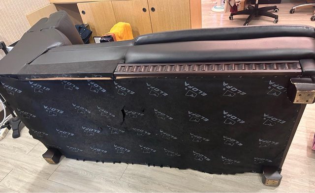 沙發表面傷痕累累,及底下破底都是家屁孩貓造成
