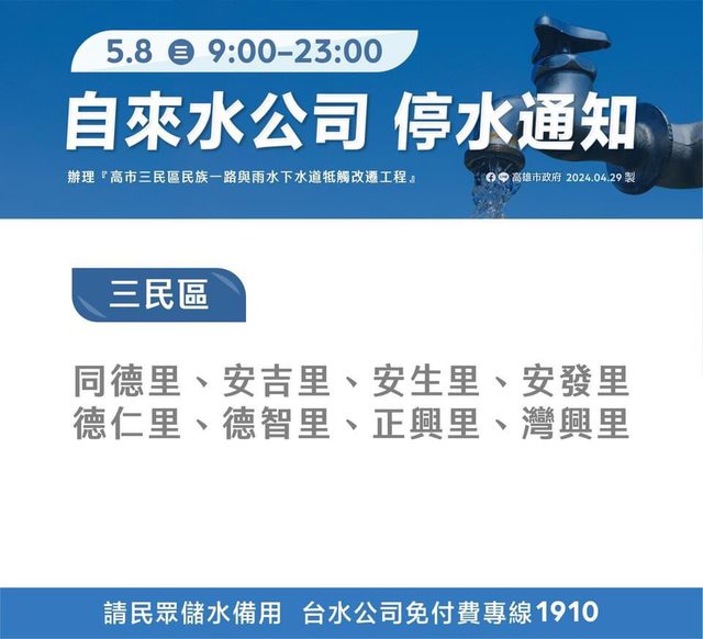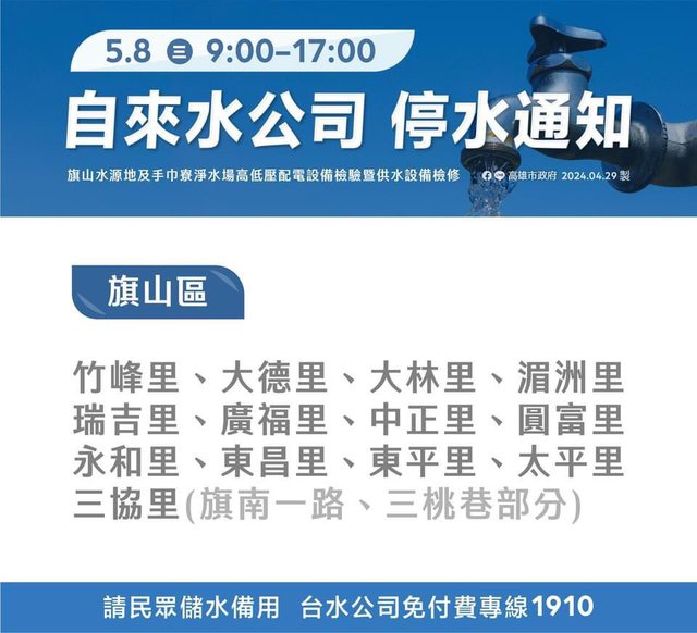 標題[閒聊] 高雄市政府停水公告