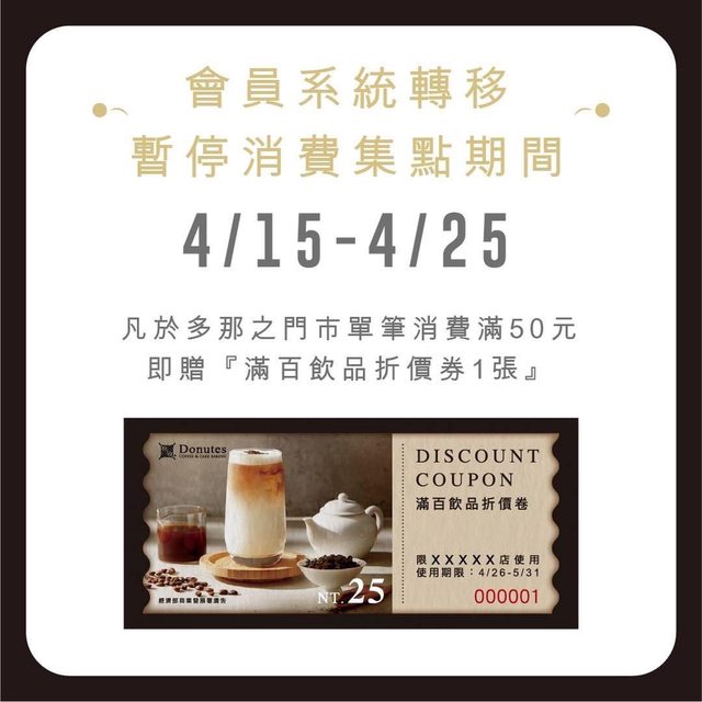 因此拿到了50張的多那之滿百飲品折價卷(折25元)