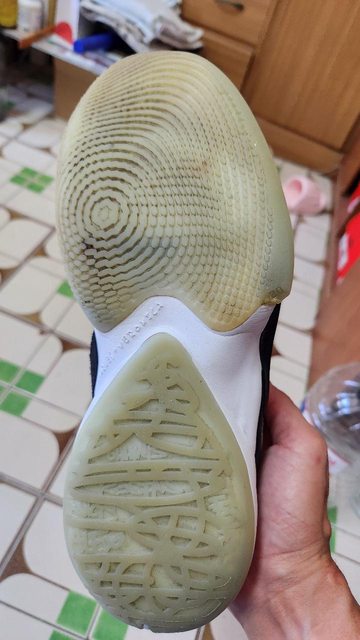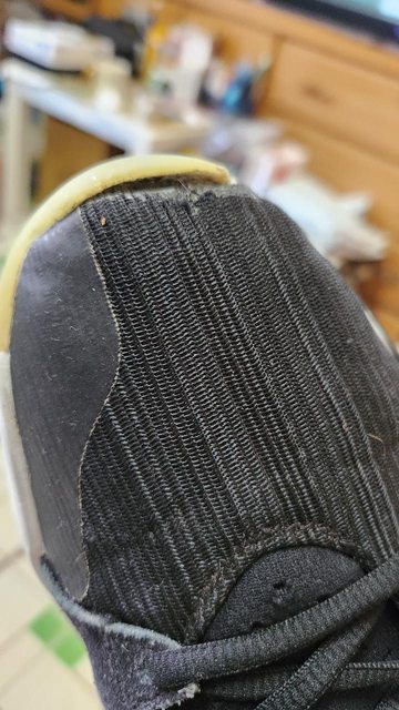 物品狀況:右腳鞋頭有脫膠,其餘左右腳皆有幾處填膠修補,穿著步行運動皆可以。