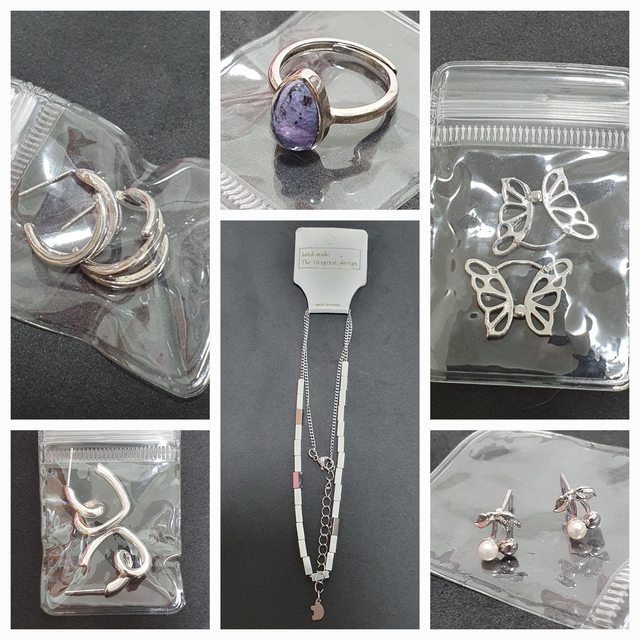 銀針耳環,鈦鋼項鍊,舒俱來925銀戒指,手工用鍍銀花朵墊片
