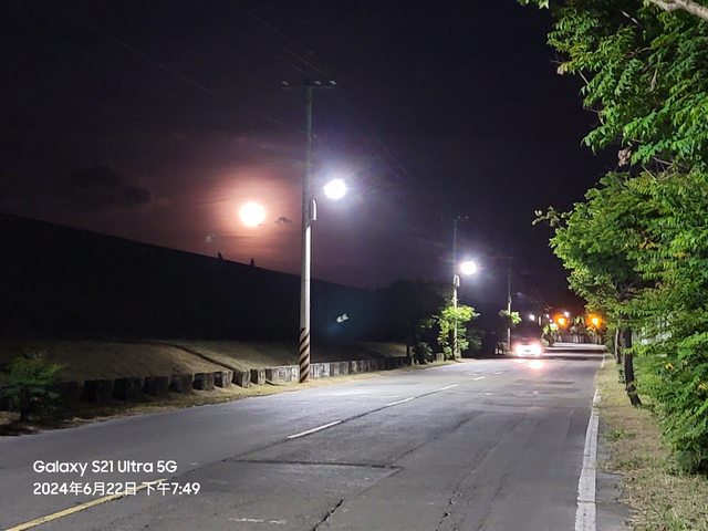 小弟住燕巢,遛狗的時候突然發現月亮超大顆!