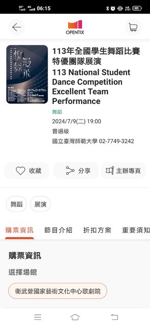 物品狀況:一張今晚衛武營表演的電子票
