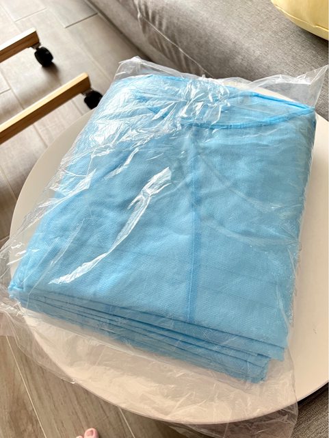 隔離衣是因為當時寶寶剛出生,有親友來訪想抱寶寶,但又怕被傳染新冠或其他病毒而購
