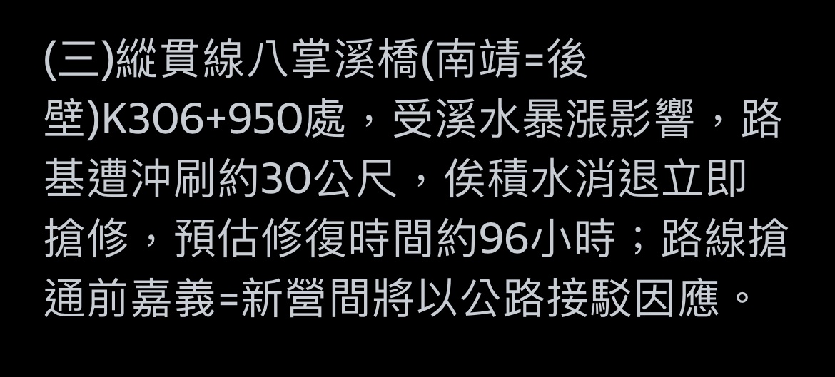 推 Smartcat06 : 要注意台鐵,嘉義的臺南之間的鐵路斷了,改公路接 07/25 23:39
