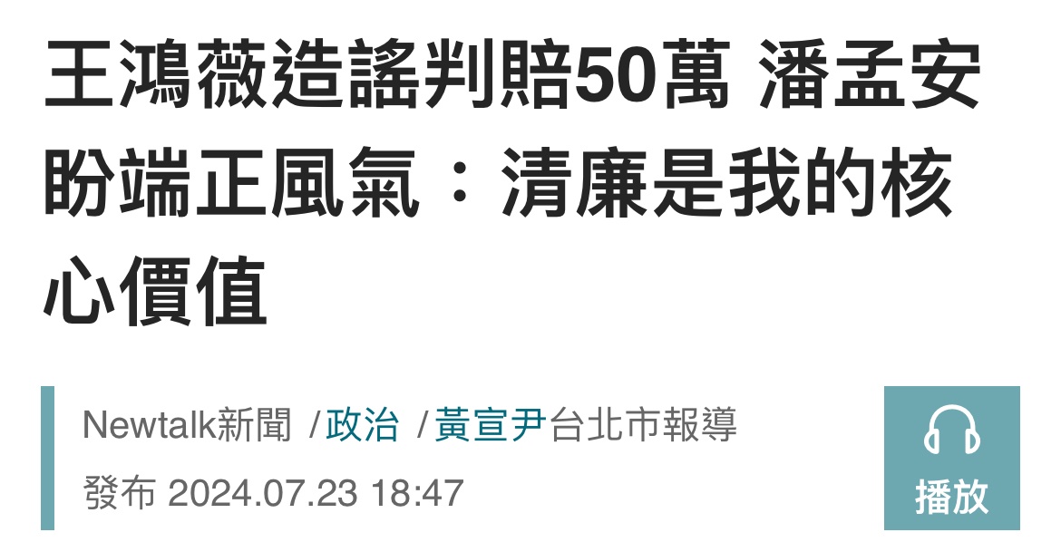 → smartmichael: 王鴻薇敗訴判賠50萬 07/27 01:09