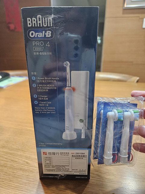 物品名稱:歐樂B Pro 4000電動牙刷 + 4刷頭