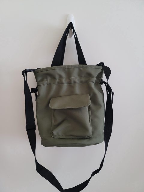 2.軍綠色束口休閒背包 長20 寬8 高23