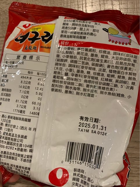 物品名稱:韓國泡麵(香辣海鮮味烏龍麵1包、炸醬麵3包)