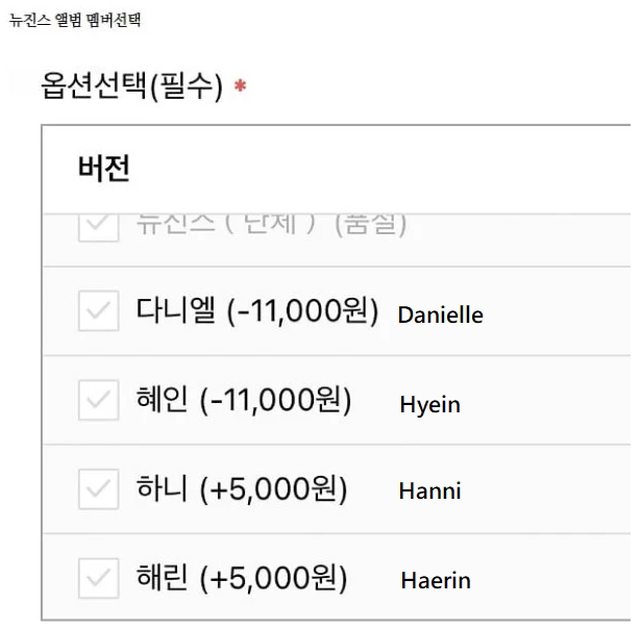 Hanni和Haerin是人氣的前兩名,Danielle和Hyein價格下跌1萬韓元,Minji的情況不明。
