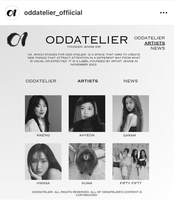 標題[閒聊] Jennie廠牌藝人名單