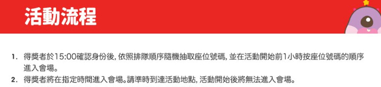 → sodasjTY: 前一小時到現場進行認證排座位之類的 111.83.133.46 12/27 19:06