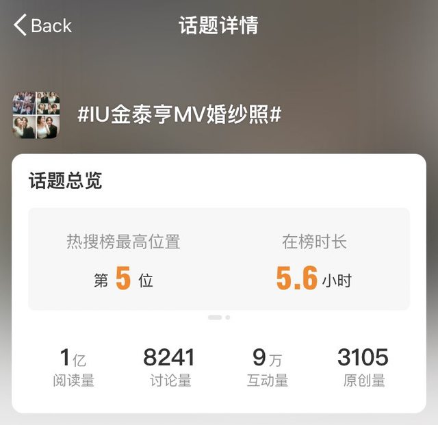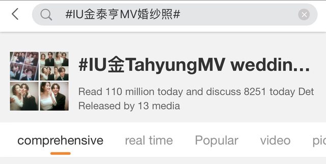 BTS V和IU的婚紗四格照在微博上閱讀量超過1億次