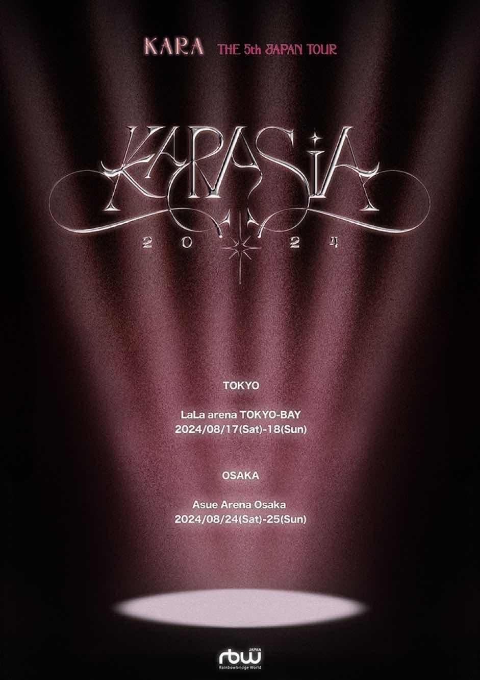 而本次KARA將於8月17日及18日在東京開唱,並於8月24日及25日在大阪舉辦演唱會。