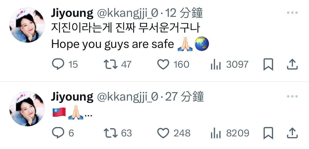 → usenwo: KARA姜知英關心台灣地震 39.12.49.122 04/23 21:18