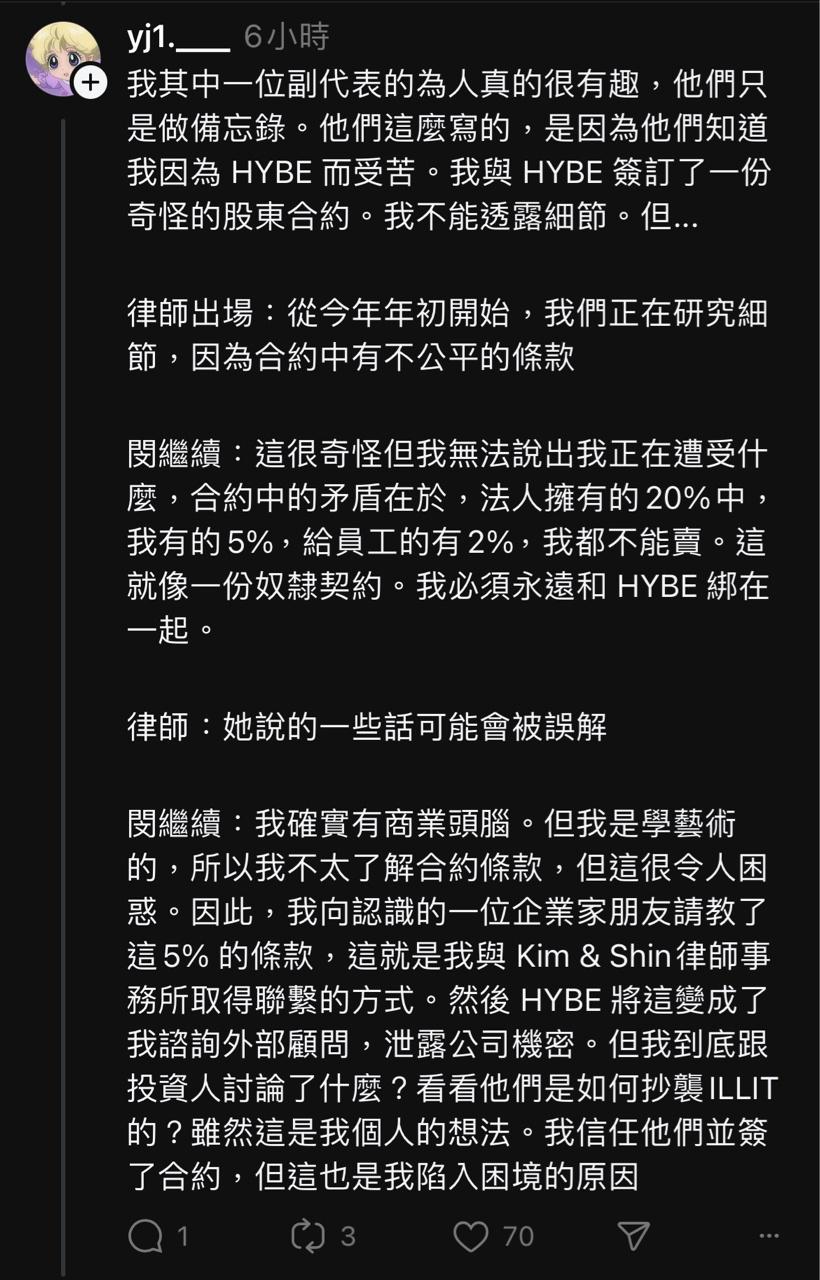 推 YALEMY: 不過HYBE的指控都沒正面回應啊 這些算私人101.136.34.48 04/25 22:56
