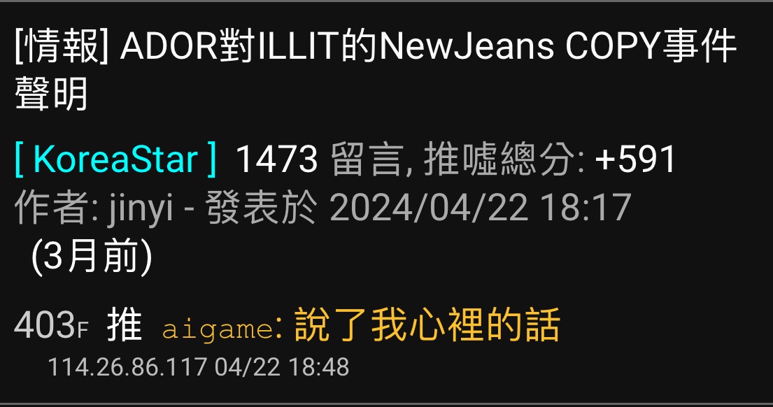 → ChrisDavis: 那ILLIT哪裡抄襲NewJeans了?y1.162.200.59 07/23 21:11
