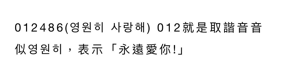 推 linkin0506: 012是永遠的的諧音,486是我愛你的筆 61.227.219.39 08/11 23:05