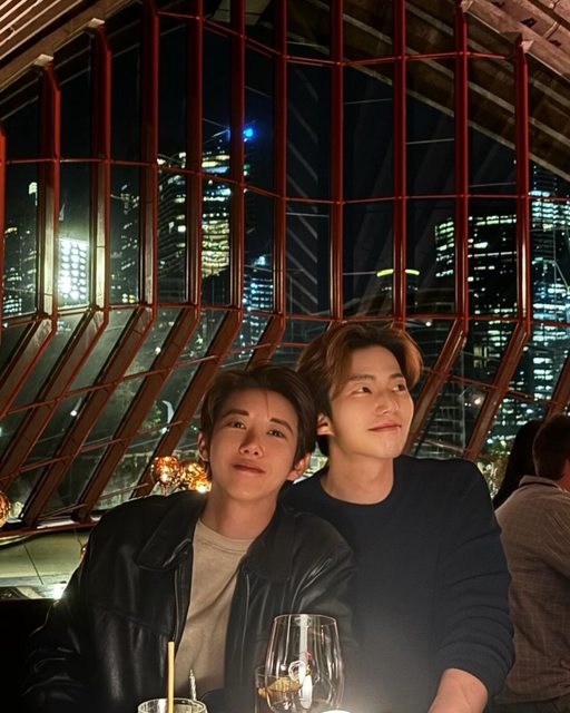 在公開的照片中,光熙與曾一起活動的帝國之子成員Kevin一起在餐廳拍下了認證照。