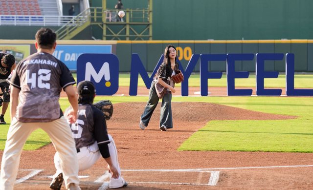 《單身即地獄3》的尹廈情應亞洲跨國集資平台MYFEEL邀請,今日來台為樂天桃猿隊開球,