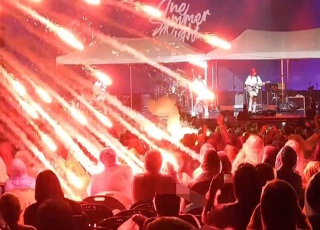 演期間,煙火配合音樂旋律釋放時,卻發生了原本該向天空射的煙火,變成直接往觀眾席