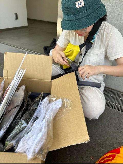 在隊伍等待的空檔就先拆初回限定盤的小卡給社團的買家認領。