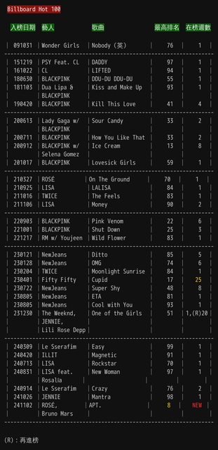 → LesBleus : 對,23年洗週數的跟洗歌數的都自爆 42.72.72.238 10/29 09:14