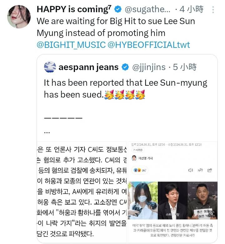 → Haerin520 : 怎麼連Hybe元老都不放過 殺人誅心 111.71.215.67 10/31 17:18