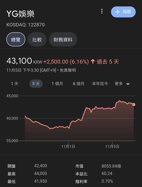 附帶一提,YG這幾天股價漲了