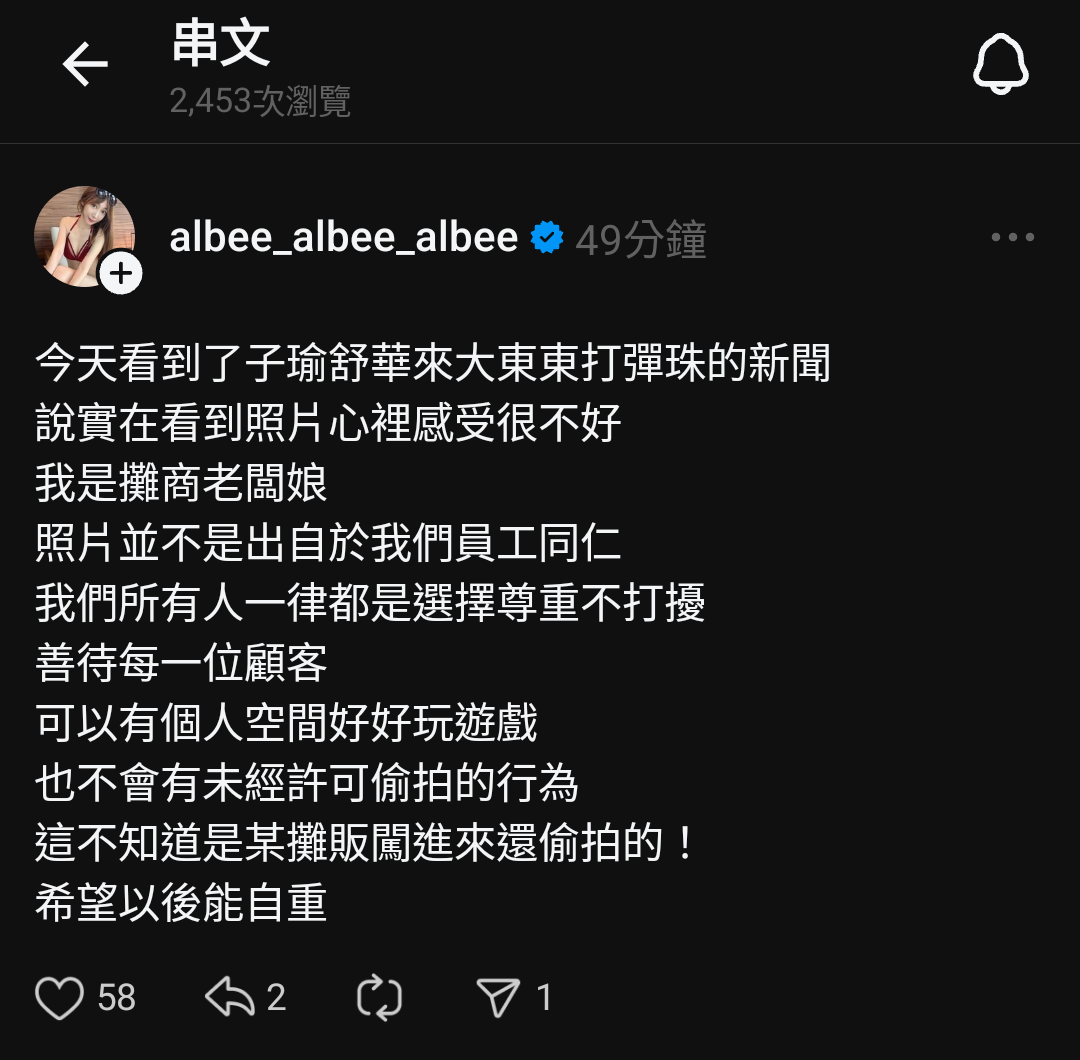 → tarimasu: 闖別人攤位偷拍上傳、事後放監視器照片 223.138.89.162 11/06 20:49