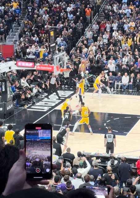 瞬間變成了湖人主場的氛圍,老詹連續噴進好幾顆三分後全部人都坐不住了!