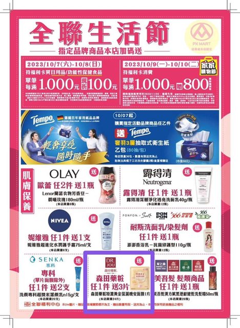 標題[情報] 全聯 森田藥妝 任1件送3片面膜
