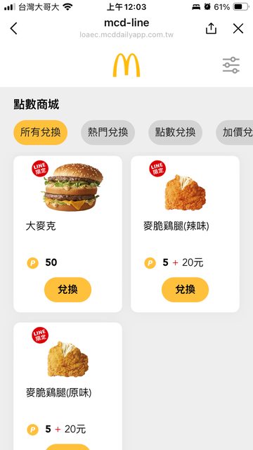 → bailan: 堡類要50點換的少吧,雞腿賣完都還有啊 223.138.16.63 10/18 10:13