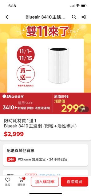 標題[情報] pchome blueair 濾網(3410)買一送一