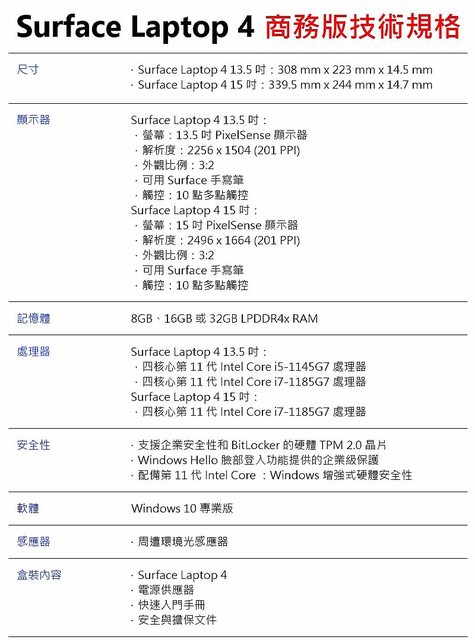 處理器:Intel Core i5-1145G7 螢幕:13.5 吋 PixelSense 觸控螢幕 記憶體:8GB 儲存裝置:256GB 固態硬碟 顯示卡:Intel Iris Xe Graphics 機身顏色:墨黑色 作業系統:Windows 10 專業版 保固:一年(商務版可加購延伸保固) https://i.imgur.com/RV0tm4f.jpg